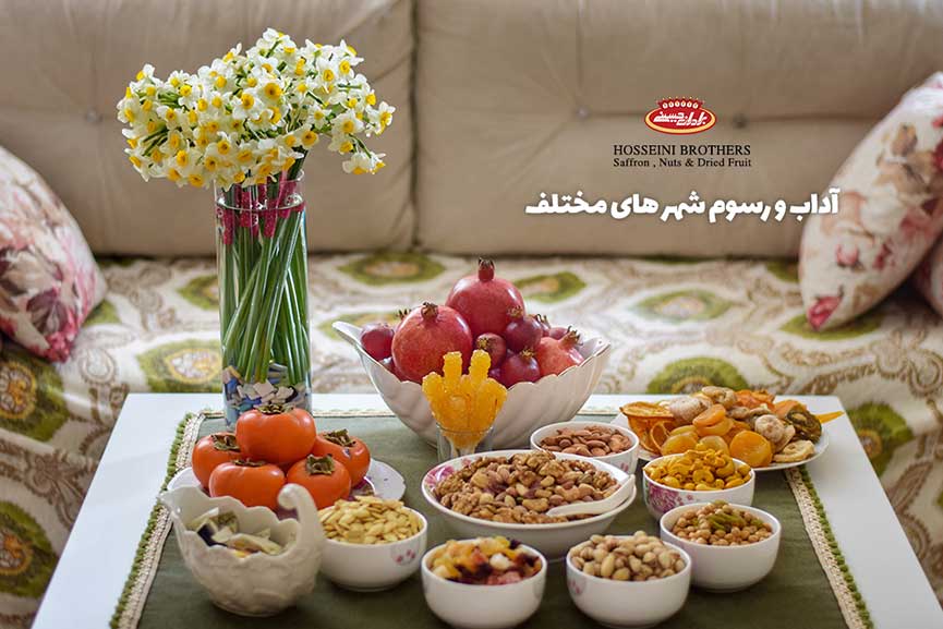 یلدا هم مثل نوروز یکی از جشن های باستانی ایران است که تا به امروز جشن گرفته می شود. درست است که در این شب به خصوص در کل مردم از آداب و رسوم خاصی پیروی می کنند ولی در هر شهر نیز سنت های منحصر به فرد دیگری نیز دنبال می شود که در ادامه به بررسی این سنت های به خصوص می پردازیم اما جز ثابت این مراسمات آجیل شب یلدا می باشد.