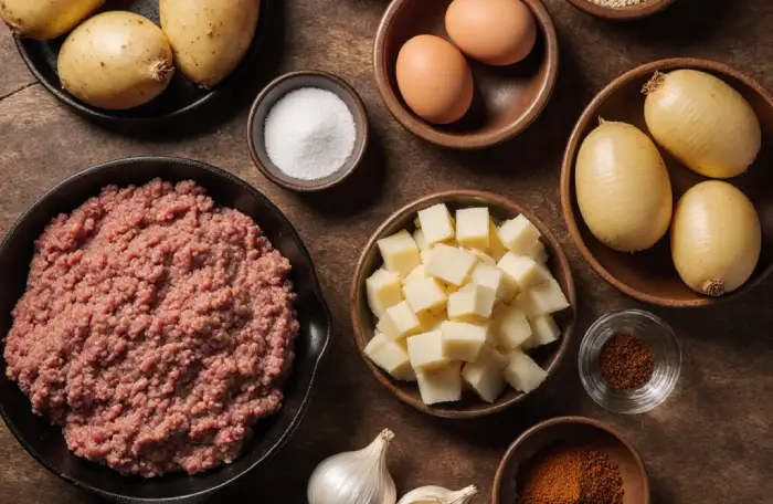جهت تهیه کتلت مواد اولیه را تهیه کرده و روی میز کار بچینید. در ادامه روش تهیه کتلت گوشت و سیب زمینی را مرحله به مرحله ذکر می کنیم: